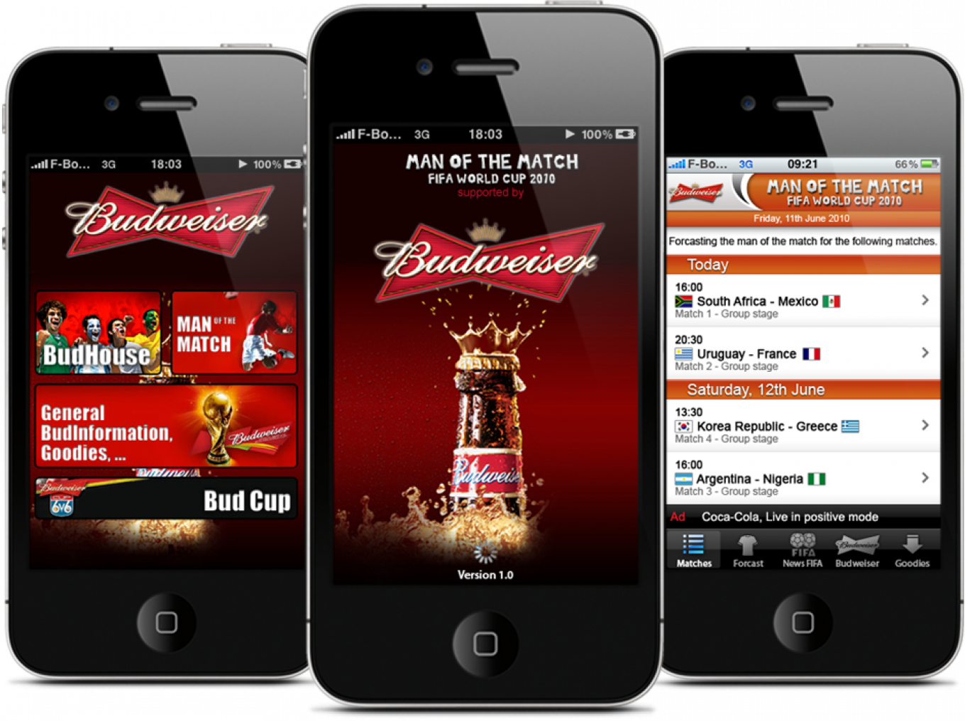 Création d’application iPhone pour la marque de boissons Budweiser et la coupe du monde de football 2010.
