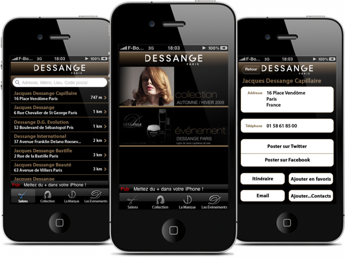 Création d’application iPhone pour la marque Dessange Paris et le festival de Cannes.