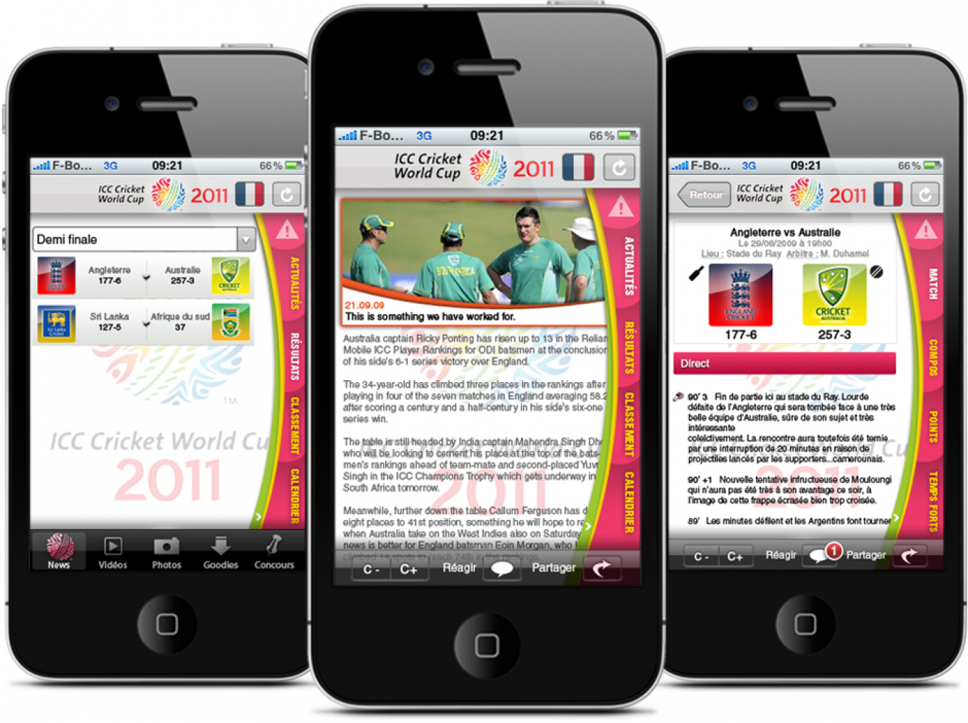 Création d’application iPhone pour la Coupe du Monde de Cricket 2011.