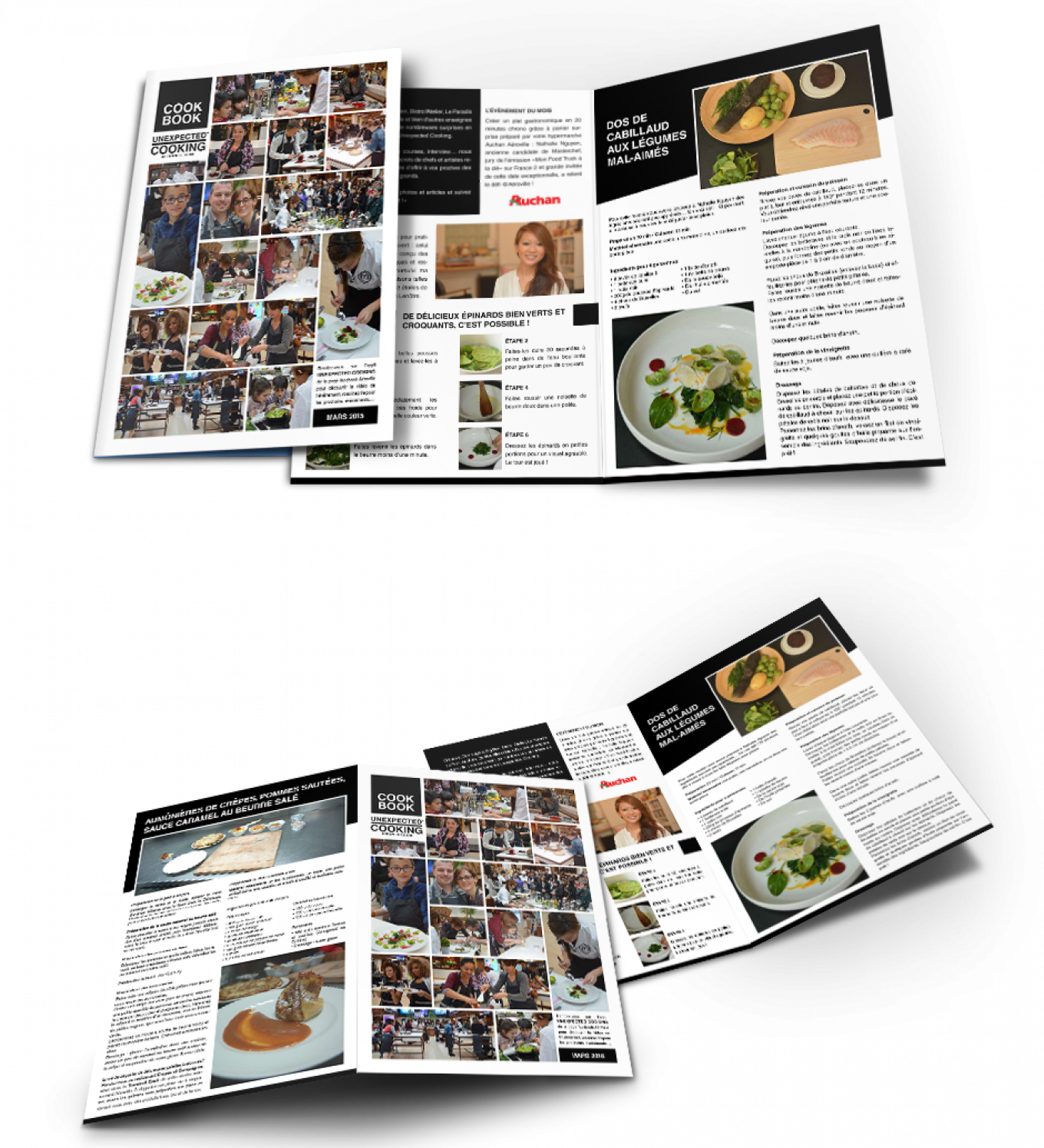 Création d’un dépliant retraçant l’expérience vécu lors d’un atelier culinaire dans le centre commercial Aéroville. On y retrouve des photos, des recettes, des informations et une interview du chef ayant animé l’atelier,… Projet commandé par l’agence « The Brand Teller » pour Aéroville.