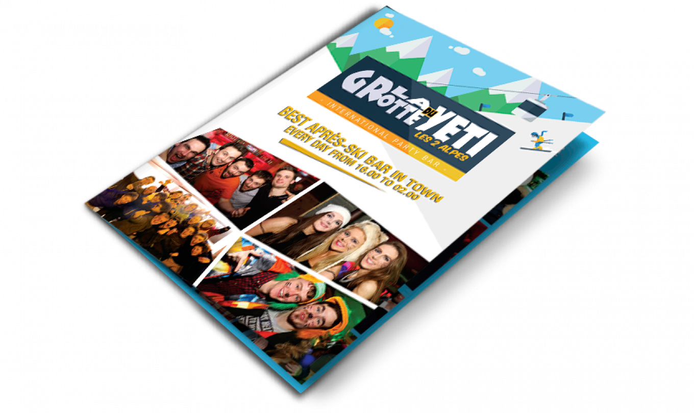 Réalisation d’un flyer et roll-up / kakémono pour la licence de bar en station de ski La Grotte du Yéti. Ces documents ont été réalisés pour un salon.