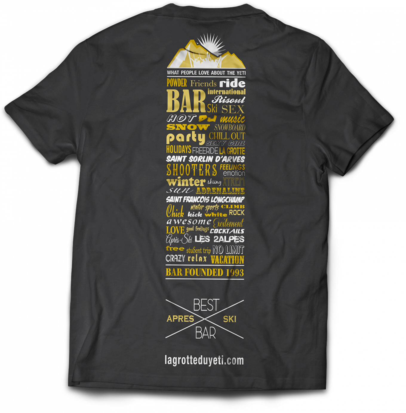 Création du t-shirt de la saison 2014 pour La Grotte Du Yeti destiné aux membres du staff de l’établissement et a être offert lors de soirées.