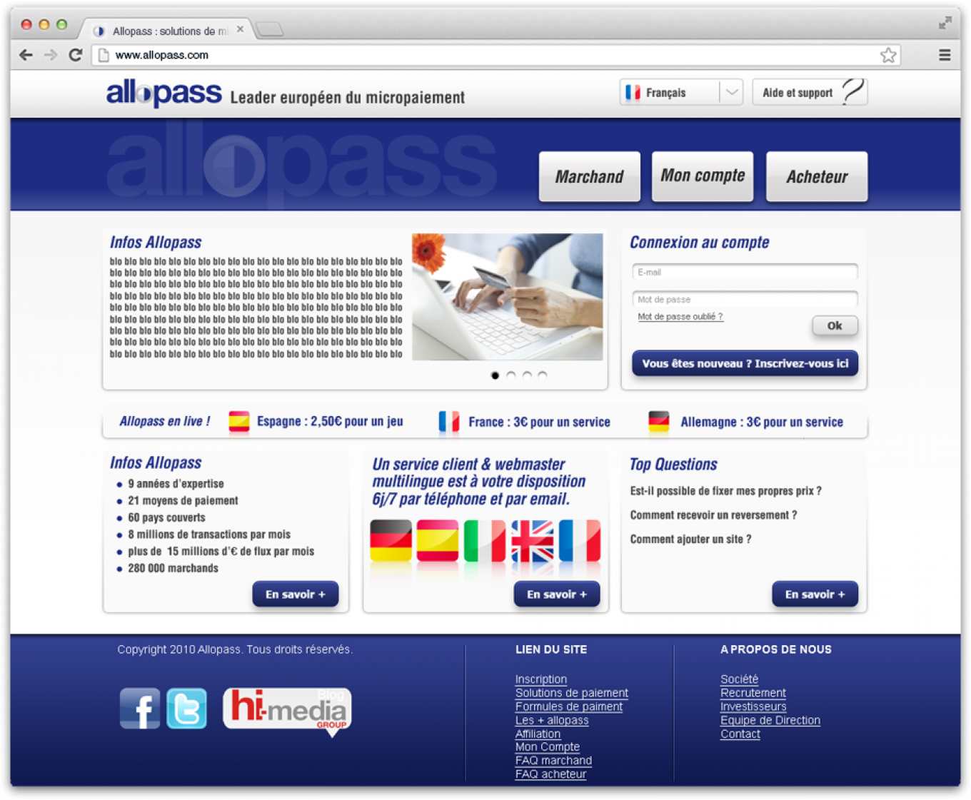 Création d’une nouvelle charte graphique, et du nouveau site web du moyen de paiement virtuel Allopass.
