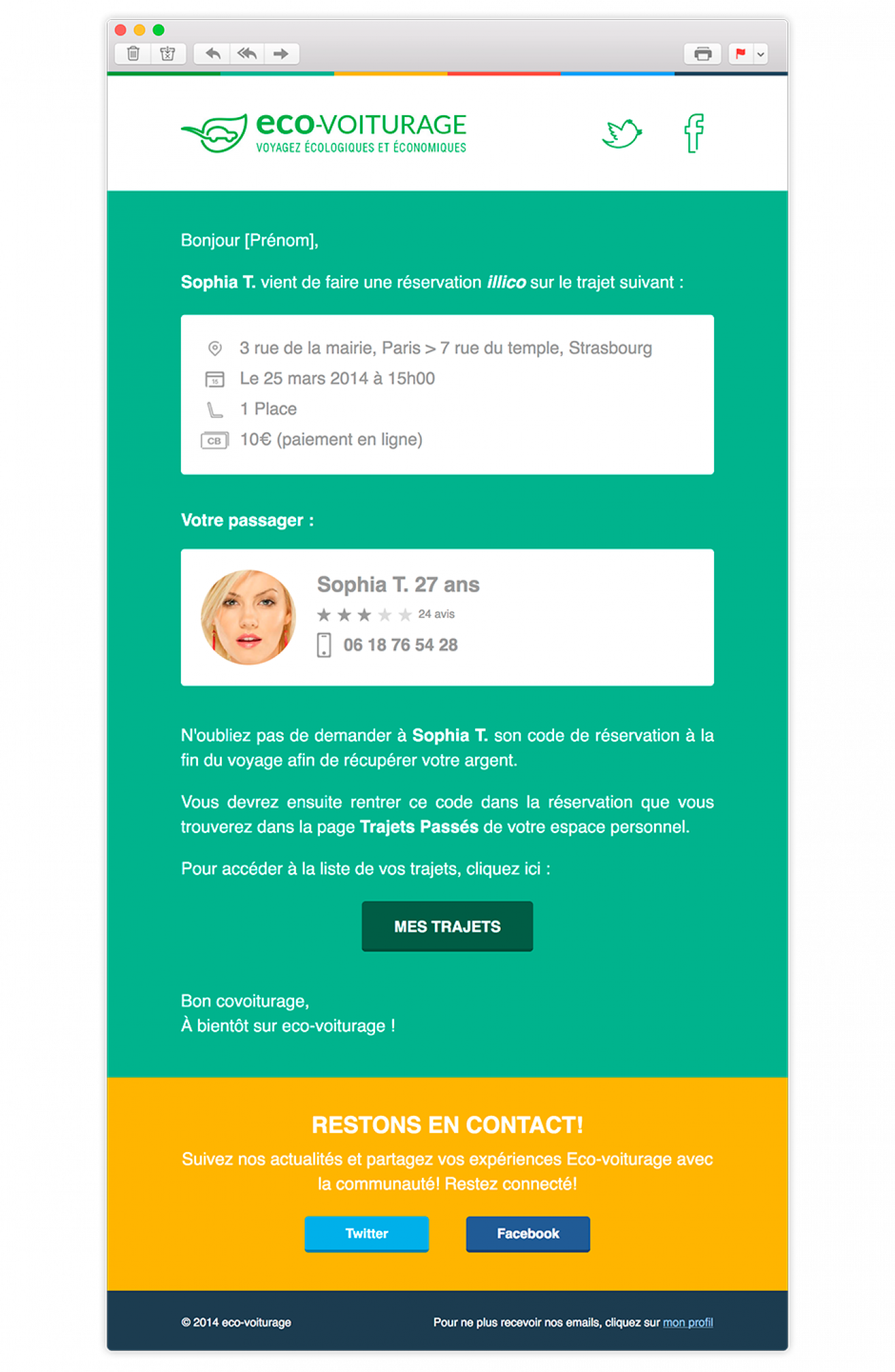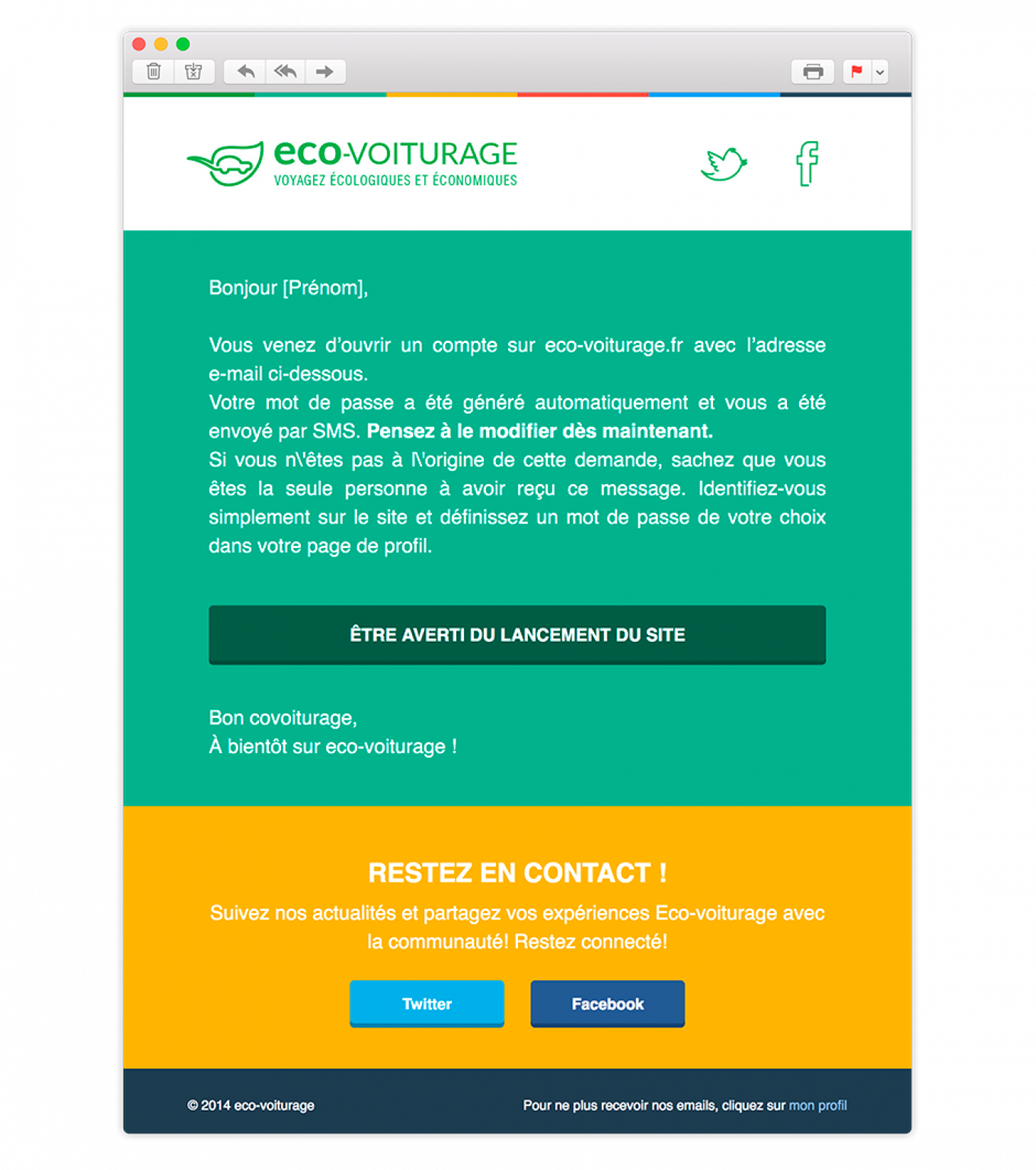 Création graphique et intégration html/css de tous les emailings de fonctionnement du site eco-voiturage.