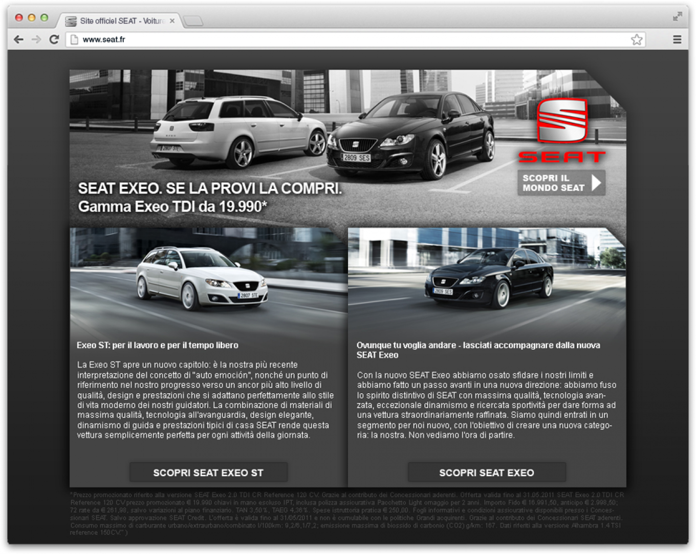 Création d’un mini site pour le lancement de la nouvelle Seat Exeo.