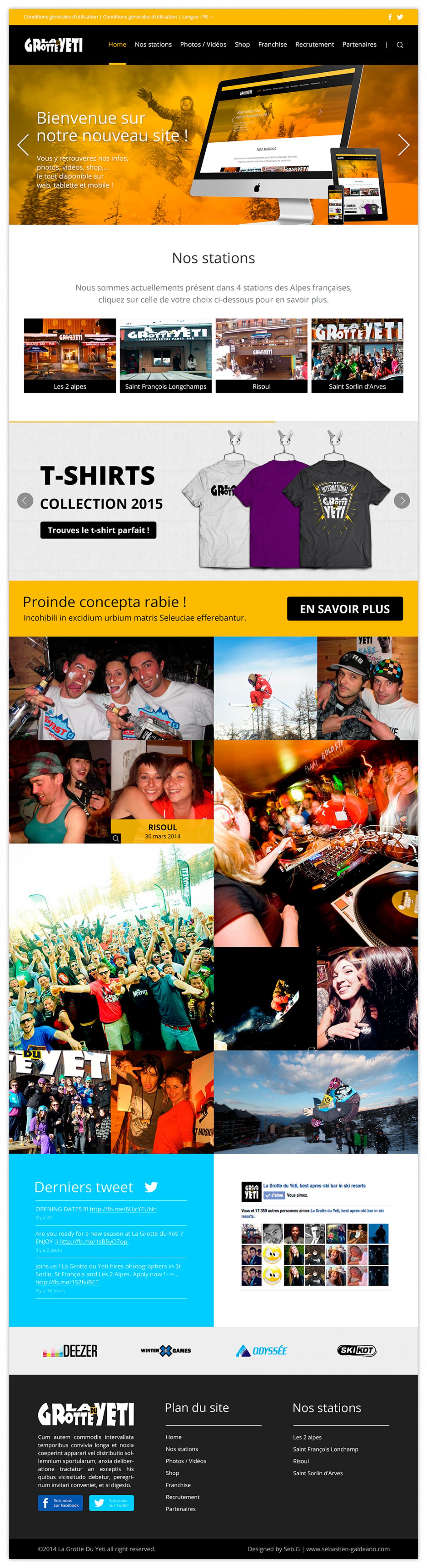 Voici ma proposition de refonte sur site web responsive de La Grotte du Yéti, un licence de bar/boite en station de ski dans les Alpes.